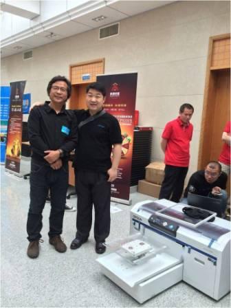 年會(huì)現(xiàn)場(chǎng),愛普生F2080t恤衫印花機(jī)的表現(xiàn)不負(fù)眾望,打印的t恤衫色彩效果得到藝術(shù)設(shè)計(jì)攝影界觀眾的一致好評(píng),我為公司也為愛普生F2080樹立了良好的形象,作為Epson大中華區(qū)華北區(qū)和華南區(qū)的獨(dú)家代理,在展會(huì)現(xiàn)場(chǎng),公司銷售人員及技術(shù)人員熱情地回答和專業(yè)的機(jī)器操作,都給與會(huì)觀眾留下了極好的印象,樹立了專業(yè)的公司形象。