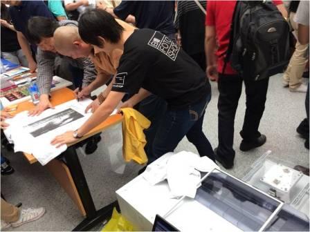 國際攝影大師楊延康老師在運(yùn)源代理Epson F2080 T恤印花機(jī)打印的自己作品上簽名,并連連夸贊設(shè)備的優(yōu)秀表現(xiàn)