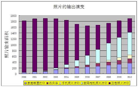隨著數(shù)碼相機的普及,盡管照片的拍攝量每年都在成倍增加,但是照片的輸出量進十年來一直徘徊不前,電腦、數(shù)碼相框、手機、Ipad等的不斷普及,使人們對于照片印出的需求銳減,但照片輸出絕對量并沒有明顯減少,畢竟,實物照片是液晶屏幕不可完全取代的。