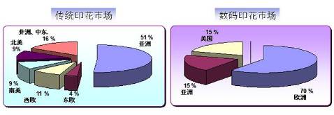 (傳統(tǒng)與數(shù)碼印花市場的地理分布)